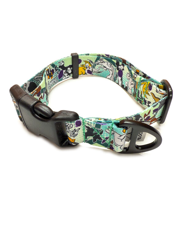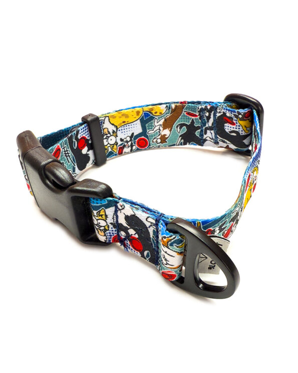 - A sima csatos nyakörv a leggyakoribb és legegyszerűbb nyakörv típus, amit egy műanyag csattal tudsz fel- és levehetni a kutyád nyakáról. A csat erős és -20 fokig fagyálló műanyagból készül.