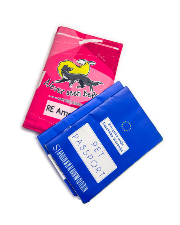 Az útlevéltartó mérete 15 x 20 cm – kényelmesen elfér benne 2 kutya útlevele + teljesítménykönyve vagy 4 kutya útlevele/oltási könyve.